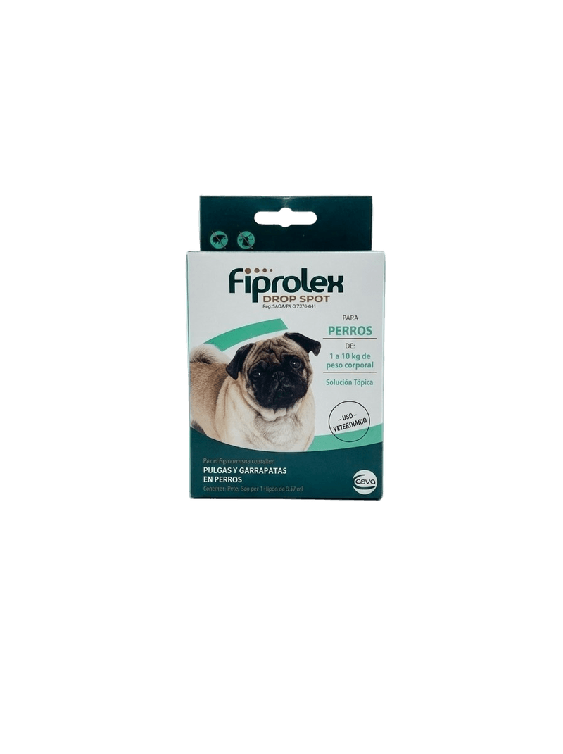 1 pipeta para el tratamiento, control y prevencion de ectoparasitosis en perros (pulgas y garrapatas) Las pipetas Fiprolex es un ectoparasiticida de uso tópico, el componente base es fipronil, utilizada para combatir las pulgas y garrapatas en perros.