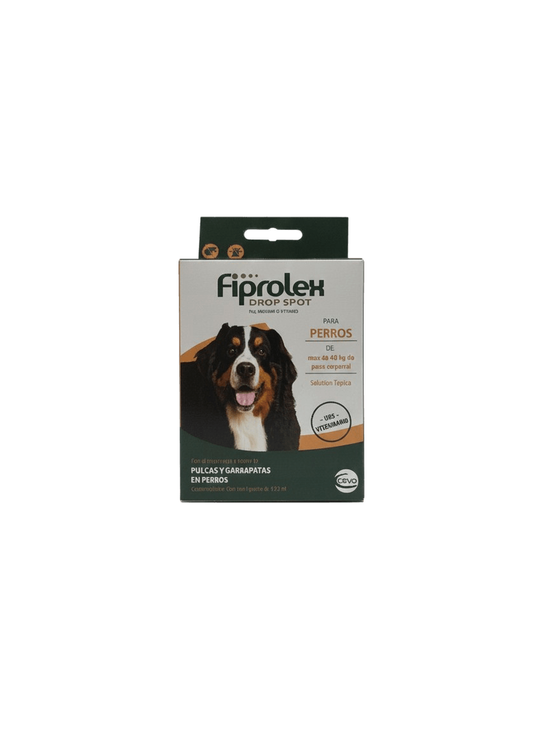 1 pipeta para el tratamiento, control y prevencion de ectoparasitosis en perros (pulgas y garrapatas) Las pipetas Fiprolex es un ectoparasiticida de uso tópico, el componente base es fipronil, utilizada para combatir las pulgas y garrapatas en perros.