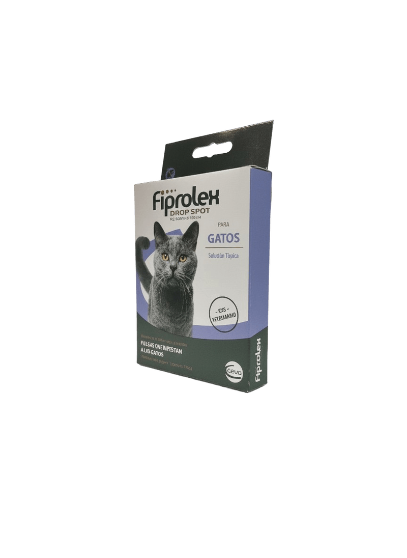 Adiós pulgas y garrapatas! Las pipetas Fiprolex Drop Spot, hechas a base de fipronil, actúan contra las pulgas y garrapatas en gatos. Las pipetas Fiprolex Drop Spot tienen un efecto letal en ectoparásitos. Su efecto residual mantiene libre a tu gato de pulgas por 28 días y libre de garrapatas hasta por 21 días después de la aplicación. Sustancia activa: Fipronil.